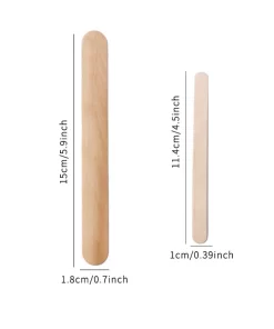 Pack de 100 espátulas corporais em madeira, com 15 cm de comprimento.